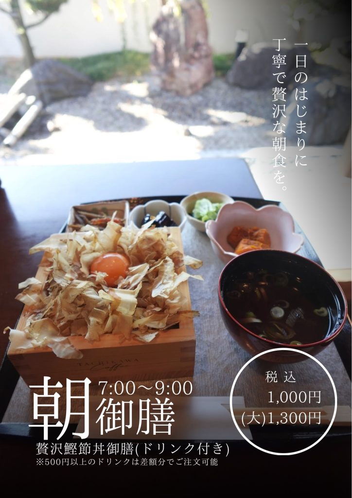 早朝ごはんタイムは朝食御膳とドリンクのみのご提供です