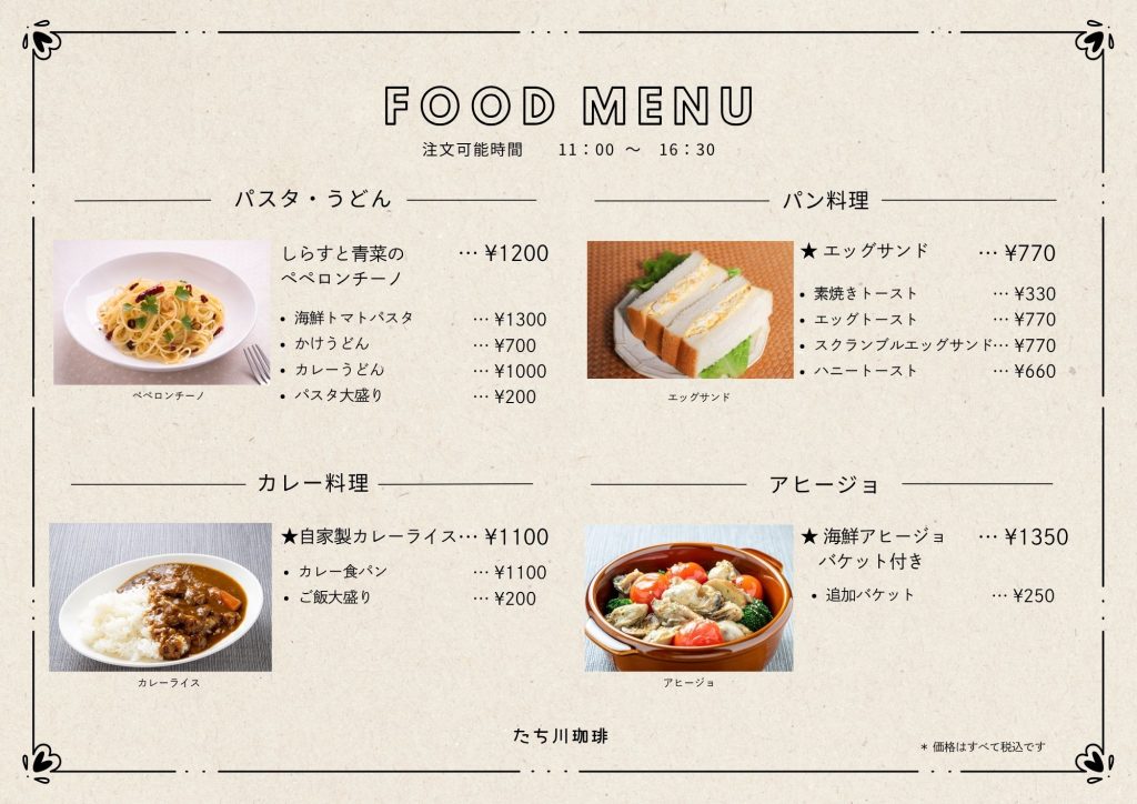 その他のフードメニューは11:00~16:30までご提供が可能です。